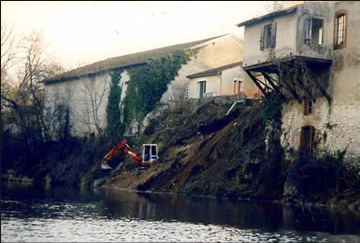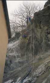 Béton projeté d’une falaise à l’arrière d’un bâtiment en méthode acrobatique