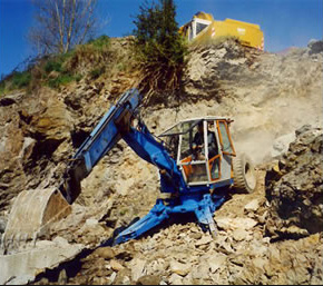 Purge à l’aide d’un outil spécial monté sur pelle et à la pelle araignée maintenue par 2 palans