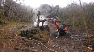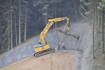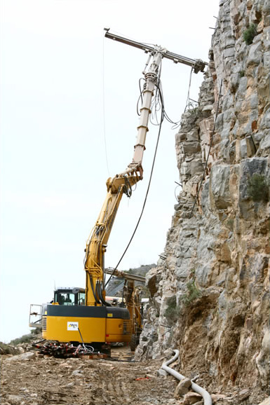 Pelles mécaniques équipées de colonnes de forage pour accès difficile