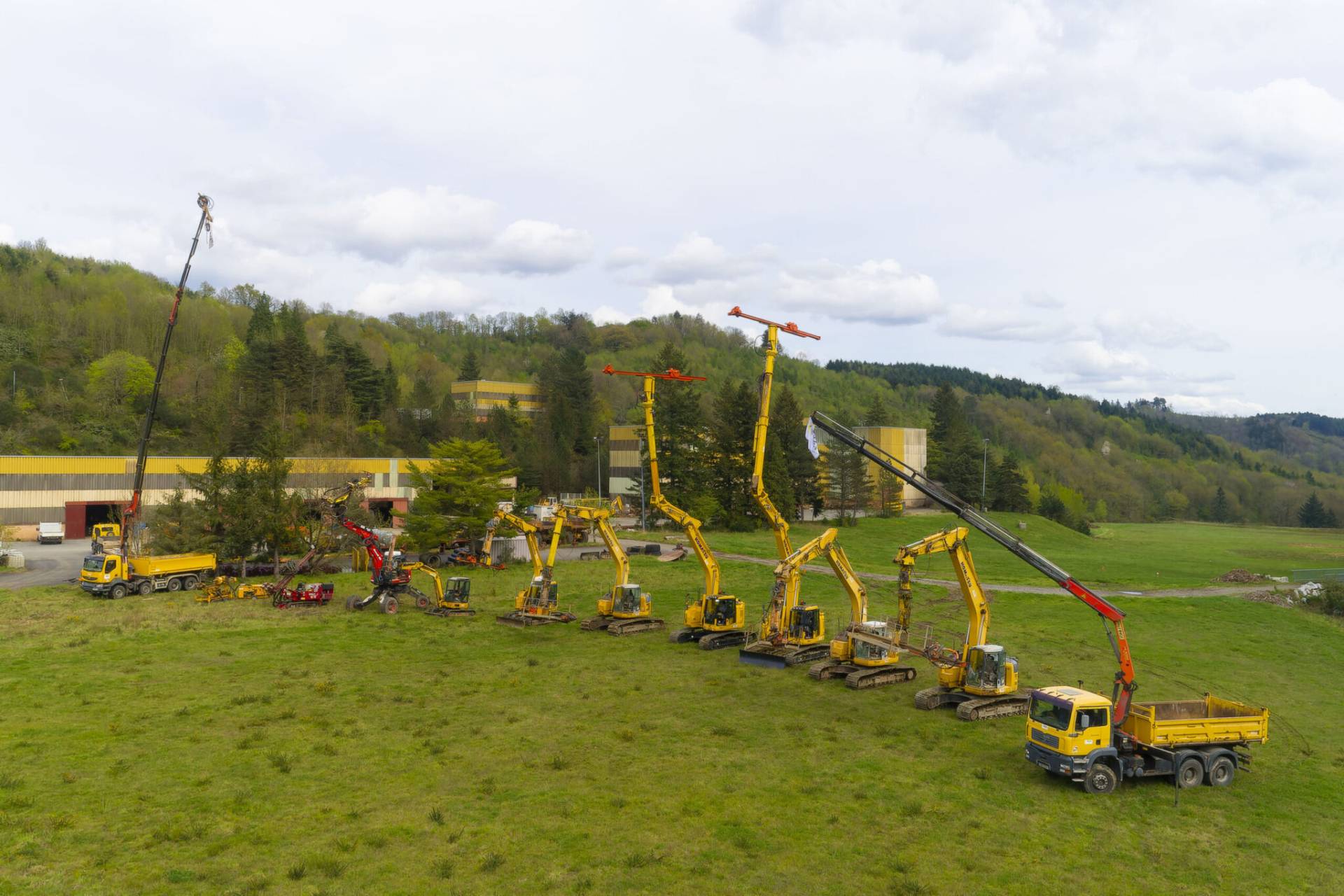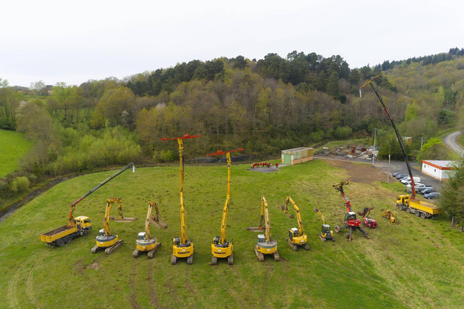 Fiche technique : 5 pelles Komatsu PC 228 US LC3 à rayon court, chenilles équipées de patins caoutchouc, équipement hydraulique bras long 21 ml positif, 18 ml négatif, télescopique et radiocommandé pour forage jusqu’à Ø 220mm, caméra embarquée.